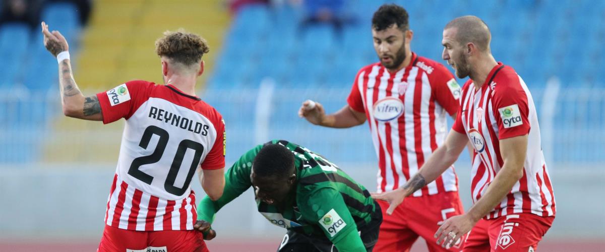 Οι τεχνικοί του Ολυμπιακού και της Νέας Σαλαμίνας Πάμπος Χριστοδούλου και Σάββας Πουρσαϊτίδης διαφώνησαν για το αποτέλεσμα του αγώνα στο Μακάρειο.