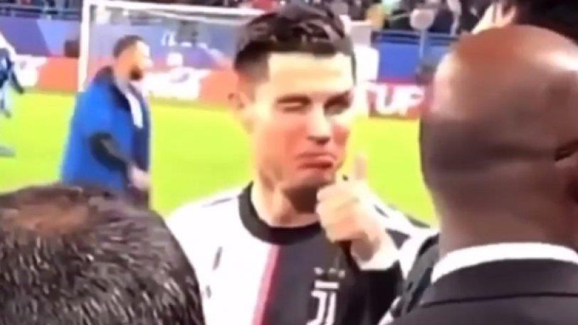 Όπως φαίνεται και στο βίντεο, ο CR7 παίρνει ειρωνική γκριμάτσα και με το σήκωμα του αντίχειρα του υπονοεί πως δεν.... τρέχει κάτι, δίχως να πιαστεί στην «παγίδα» των φίλων της Λάτσιο, που μετά την κατάκτηση του τροπαίου είχαν όρεξη για πικάρισμα.