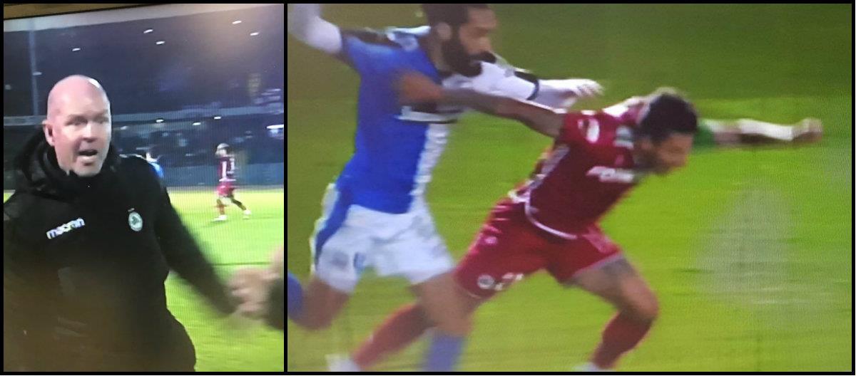 Όπως διαφάνηκε από την επαναληπτική προβολή της cytavision, υπάρχει επαφή μεταξύ των δυο ποδοσφαιριστών, αλλά ο διαιτητής έκρινε ότι δεν υπήρχε φάουλ.
