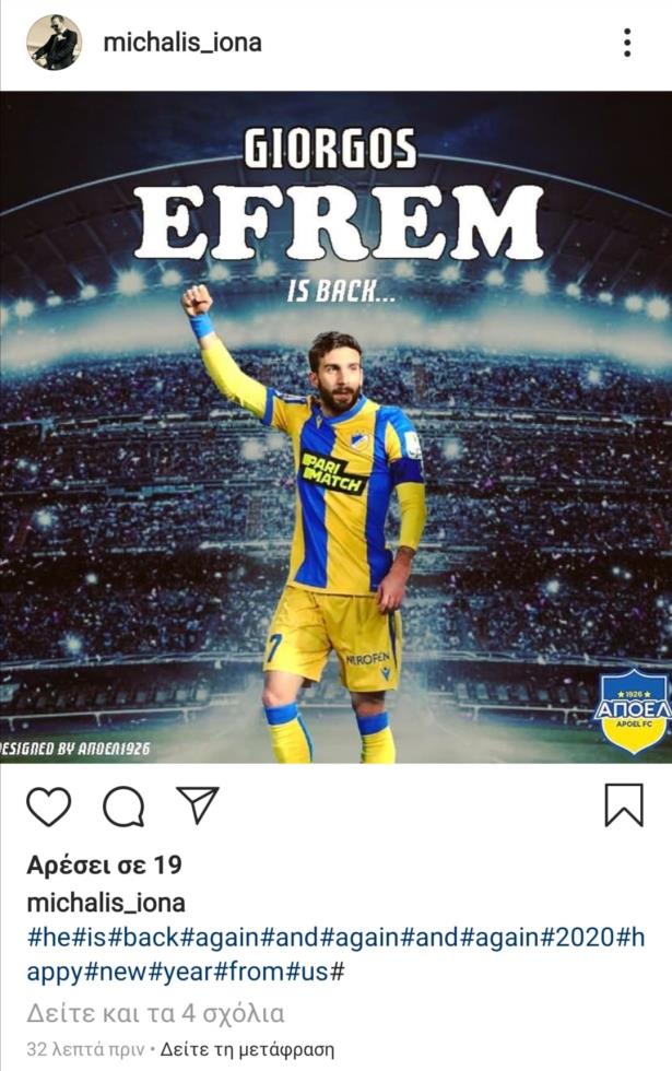 Μετά το τέλος του αγώνα ο μάνατζερ του Κύπριου διεθνή ποδοσφαιριστή με ανάρτηση του ανέφερε πως, «ο Εφραίμ επέστρεψε ξανά και ξανά και ξανά. 2020. Χαρούμενος ο νέος χρόνος από εμάς», θέλοντας να δείξει πως ο Κύπριος άσος των πρωταθλητών είναι εδώ.