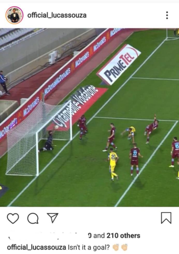 Ο Λούκας Σόουζα, διερωτάται για το τέρμα το οποίο σκόραρε αλλά ούτε ο διαιτητής ούτε ο βοηθός παρατήρησαν στις καθυστερήσεις του αγώνα.