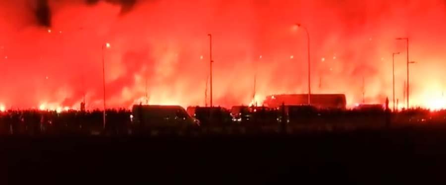 Οι φίλαθλοι των Μαδριλένων άναψαν καπνογόνα κατά μήκος του δρόμου που περνούσε η αποστολή και τραγουδούσαν συνθήματα ντοπάροντας έτσι τους παίκτες και το τεχνικό επιτελείο των «κολτσονέρος».
