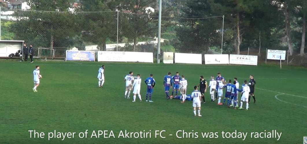 Ρατσιστική συμπεριφορά από παίκτη της ΑΕΚ Κοράκου, κατήγγειλε νωρίτερα ο παίκτης της ΑΠΕΑ Ακρωτηρίου, Κρις Μαγιούμπα, με τον αντίπαλο παίκτη να τον χαρακτηρίζει ως «σκλάβο», σε μια απαράδεχτη και καταδικαστέα απ' όλες τις απόψεις ενέργεια.