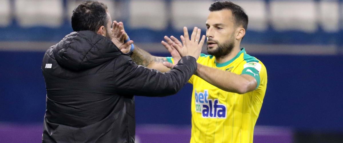 Κεφάλι στο σκορ δίνει στην ΑΕΚ, με υπέροχο τέρμα ο αρχηγός της ομάδας της Λάρνακας, Ιβάν Τρισκόφσκι.