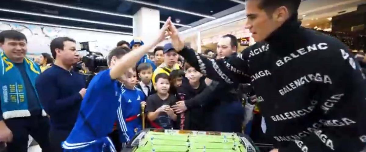 Ο Κύπριος στράικερ, αφού παρουσιάστηκε από την πρωταθλήτρια ομάδα του Καζακστάν, μοίρασε αυτόγραφα και φωτογραφήθηκε με τους μικρούς φίλους της νέας του ομάδας.