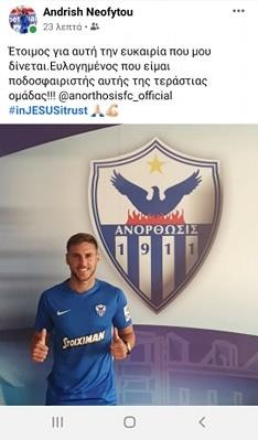 Το τελευταίο χρονικά μεταγραφικό απόκτημα της Ανόρθωσης Άντρις Νεοφύτου, με ανάρτηση του σε μέσω κοινωνικής δικτύωσης, περιγράφει τα συναισθήματά του μετά και την ολοκλήρωση της μετακίνησης του στην ομάδα της Αμμοχώστου.