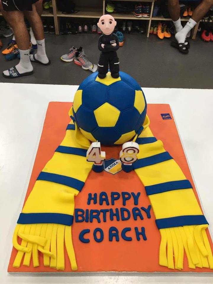 Πριν από λίγο η σύζυγος του, Κατερίνα Κετσπάγια, ανάρτησε την πιο κάτω φωτογραφία. Πρόκειται για μια τούρτα αφιερωμένη στον Τιμούρ Κετσπάγια, που έστειλαν στη προπόνηση του ΑΠΟΕΛ.