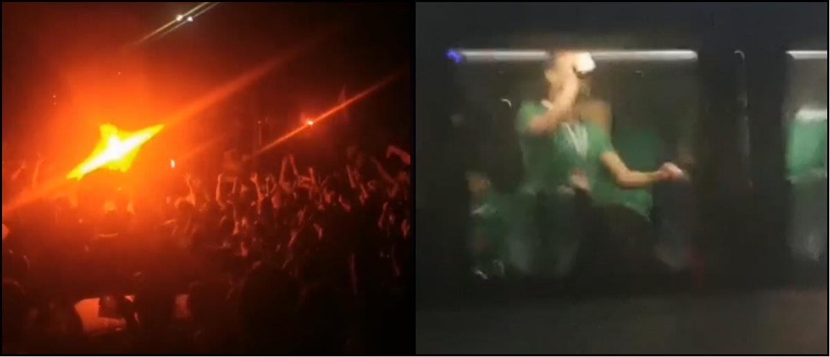Σκηνές αποθέωσης έξω από το ΓΣΠ, όπου εκατοντάδες Ομονοιάτες τραγουδούν και φωνάζουν συνθήματα κατά την αποχώρηση του λεωφορείου με τους ποδοσφαιριστές των πρασίνων, οι οποία κατάφεραν να πάρουν το εισιτήριο της πρόκρισης.
