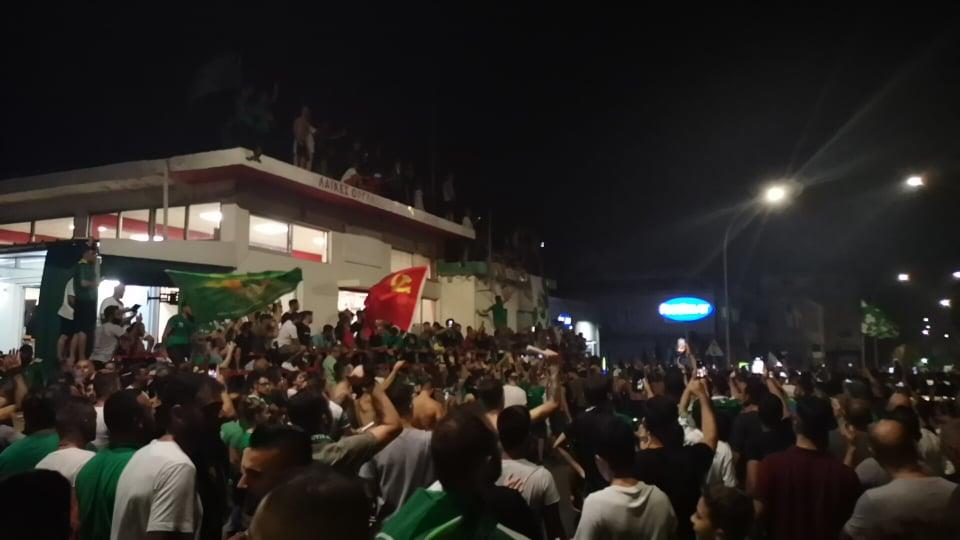 Στο Fan Club βρίσκεται και το λεωφορείο με τους παίκτες των πρασίνων, οι οποίοι θέλουν να χαρούν τη σπουδαία πρόκριση με τον κόσμο της ομάδας τους.