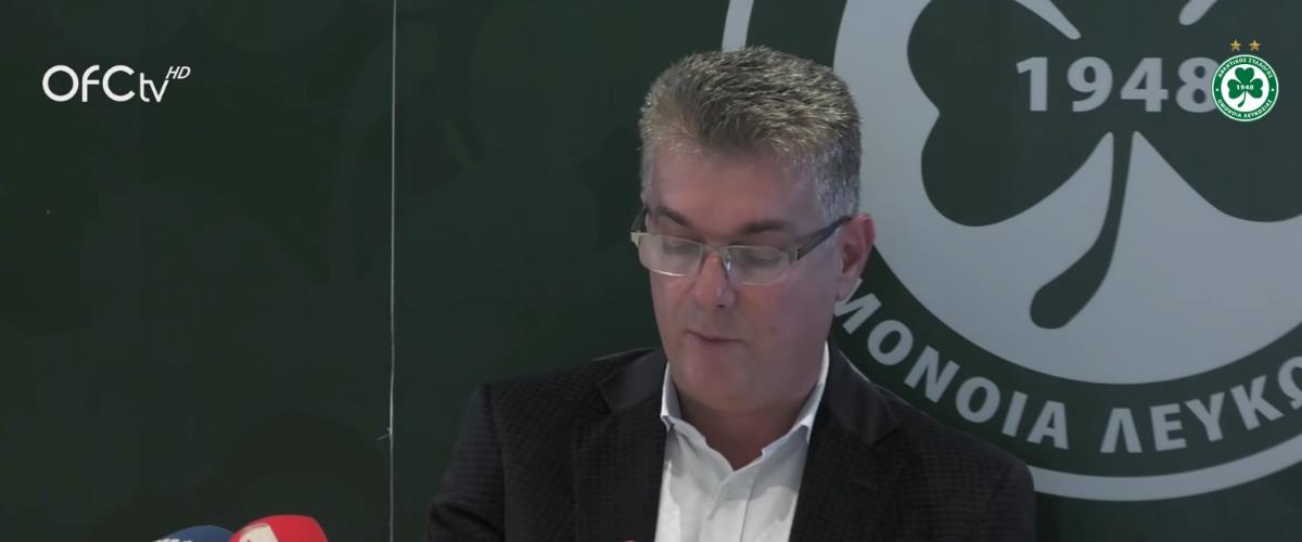 Θέλω να συγχαρώ και να ευχαριστήσω τη διευθυντική ομάδα, την τεχνική ηγεσία, τον προπονητή, τους ποδοσφαιριστές, το προσωπικό και ασφαλώς τον κόσμο της Ομόνοιας στον οποίο αφιερώνω αυτήν την πρόκριση για όλα όσα έχει κάνει για τον Σύλλογο, ειδικά στις δύσκολες και κρίσιμες στιγμές των προηγούμενων χρόνων.