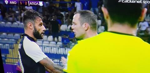 Έξαλλος ο προπονητής της Ανόρθωσης, Τιμούρ Κετσπάγια, διαμαρτυρόμενος για φάουλ στον Οκριασβίλι, ο οποίος βρέθηκε στον πάγκο στην Κυρίας, στο 71'.