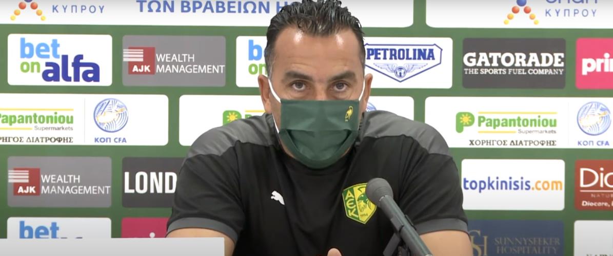 Για το στόχους που έχει με την ΑΕΚ: «Όσοι βαθμοί είναι διαθέσιμοι θα προσπαθήσουμε να τους διεκδικήσουμε μέχρι το τέλος. Οι στόχοι της ομάδας, είναι η έξοδος στην Ευρώπη και η κατάκτηση του πρωταθλήματος και του κυπέλλου».