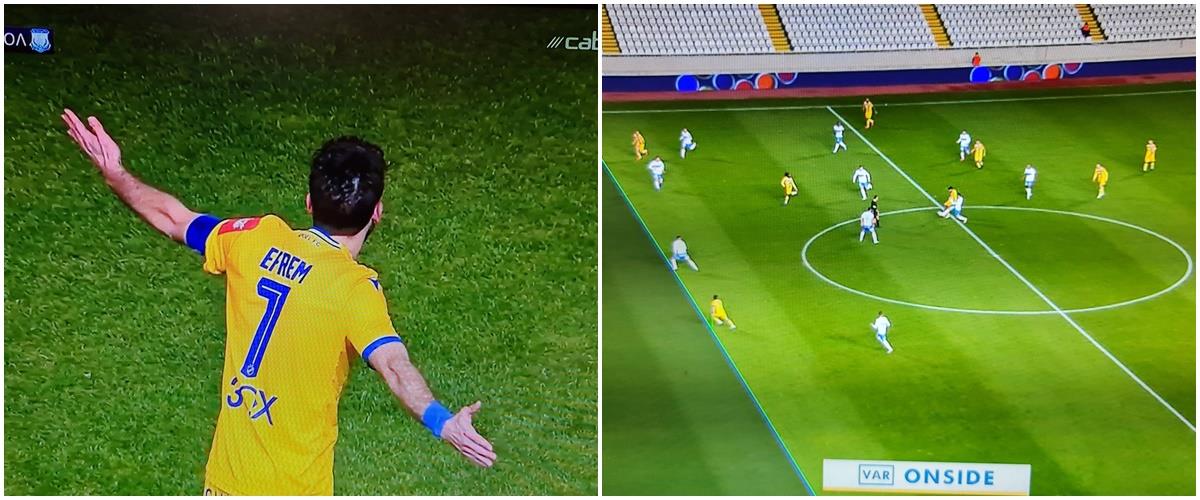 Με την επίτευξη του γκολ ο διαιτητής της αναμέτρησης, Γιώργος Νικολάου, ακύρωσε το γκολ ως οφσάιντ, ωστόσο στη συνέχεια αφού εκλέχθηκε από το VAR και ενημερώθηκε πήρε πίσω την αρχική του απόφαση.