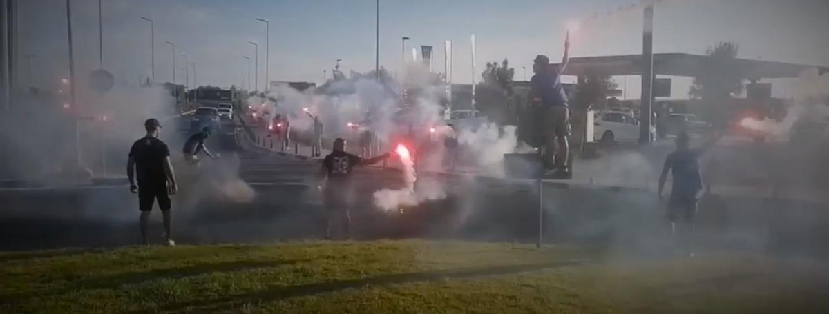 Στο αεροδρόμιο Λάρνακας, δεν θα μπορούσαν να απουσιάζουν φυσικά οι οργανωμένοι οπαδοί της Κυρίας, οι οποίοι με φωτοβολίδες και συνθήματα, υποδέχθηκαν τον Θανάση.