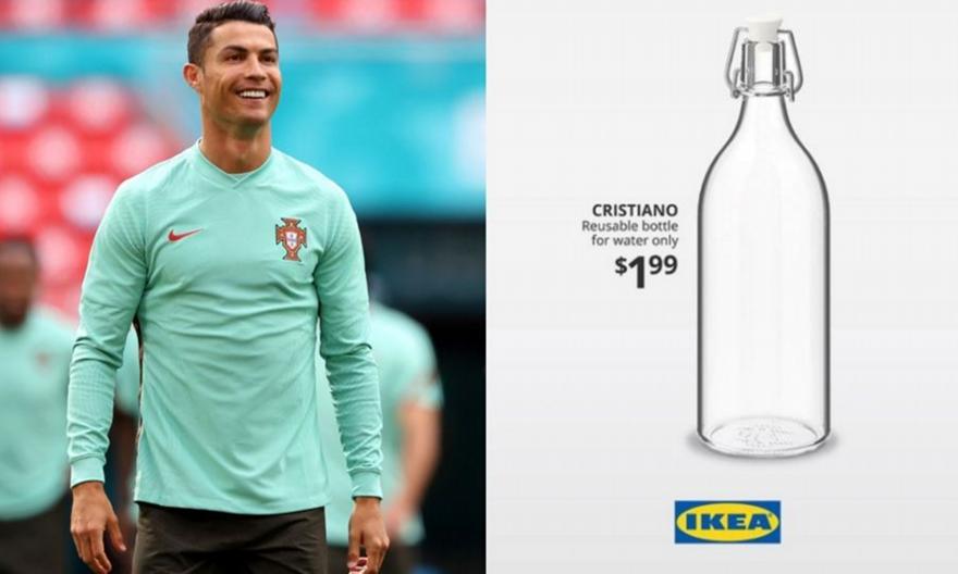 «Κριστιάνο» λέγεται το εν λόγω προϊόν, που φέρει τη λεζάντα «μόνο για νερό», με τους υπεύθυνους μάρκετινγκ του σουηδικού κολοσσού να εμπνέονται από την... κόντρα που άνοιξε ο Ρονάλντο με τα ανθρακούχα αναψυκτικά.