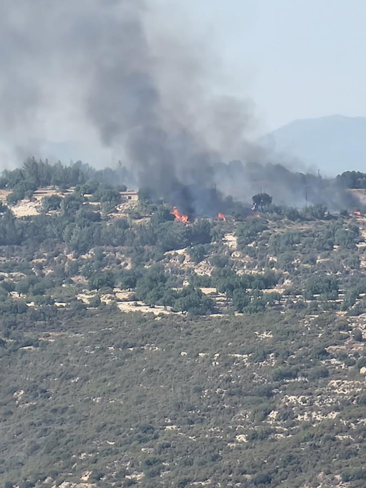 Η πυρκαγιά έχει δύο μέτωπα και είναι σε δύσβατη περιοχή, ενώ πνέουν επίσης άνεμοι.