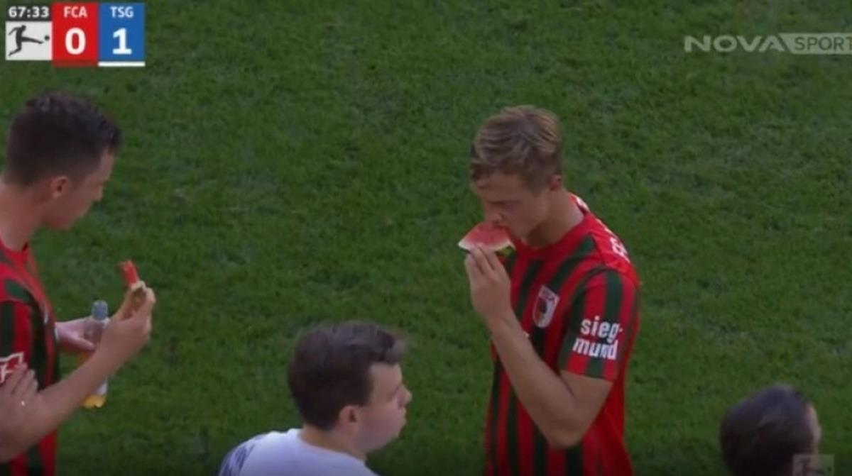 Πρωταγωνιστές τα μέλη του τεχνικού σταφ της Άουγκσμπουργκ, οι οποίοι και παρείχαν στους ποδοσφαιριστές τους καρπούζι, για να δροσιστούν στη σύντομη διακοπή του ματς!