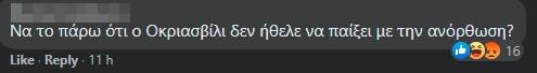 Από τα πυρά, δεν γλίτωσε ούτε και ο Τονρίκε Οκριασβίλι, καθώς οι οπαδοί των γαλαζοκιτρίνων δεν είναι ευχαριστημένοι, με τη μέχρι τώρα απόδοση του.
