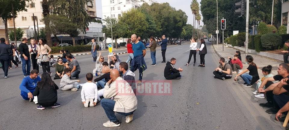 Φτάνοντας στη λεωφόρο Λεμεσού, οι διαμαρτυρόμενοι αποφάσισαν να πραγματοποιήσουν καθιστική διαμαρτυρία, με αποτέλεσμα να σταματήσει η διέλευση οχημάτων και να παρατηρηθεί κυκλοφοριακό κομφούζιο.