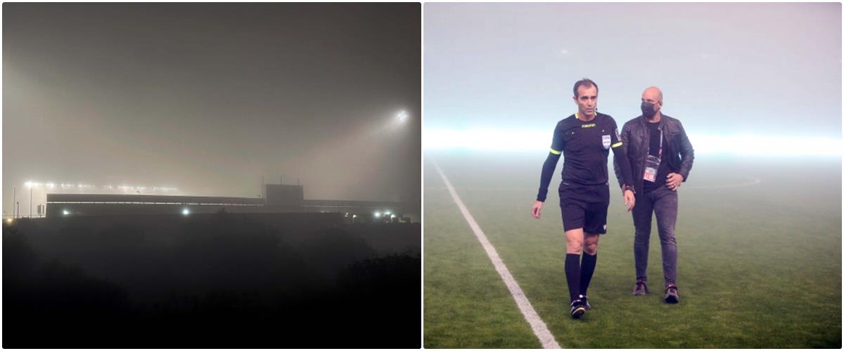 Ο διαιτητής του αγώνα μετά την επανεξέταση του αγωνιστικού χώρου, αποφάσισε όπως διακόψει οριστικά το παιχνίδι, λόγω της μειωμένης ορατότητας.