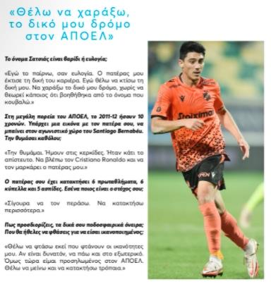 Στην καθιερωμένη συνέντευξη για το επίσημο πρόγραμμα αγώνα του ΑΠΟΕΛ, για τον αγώνα με την Πάφο FC, για την 12η αγωνιστική, μίλησε ο Γιάννης Σατσιάς.