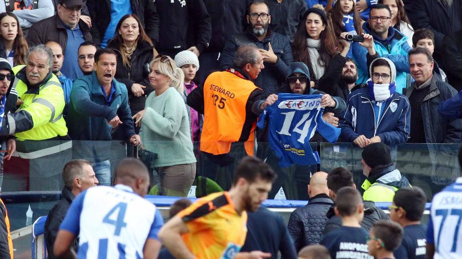 Πέραν όμως από τα γιουχαΐσματα, υπήρξαν πανό εναντίον του Τιμούρ Κετσπάγια, ενώ κατά την είσοδό του στον αγωνιστικό χώρο οι οπαδοί που ήταν πίσω από τον πάγκο του έριξαν ψεύτικα χαρτονομίσματα που παρουσίασαν το πρόσωπό του μαζί με τον Πρόδρομο Πετρίδη.