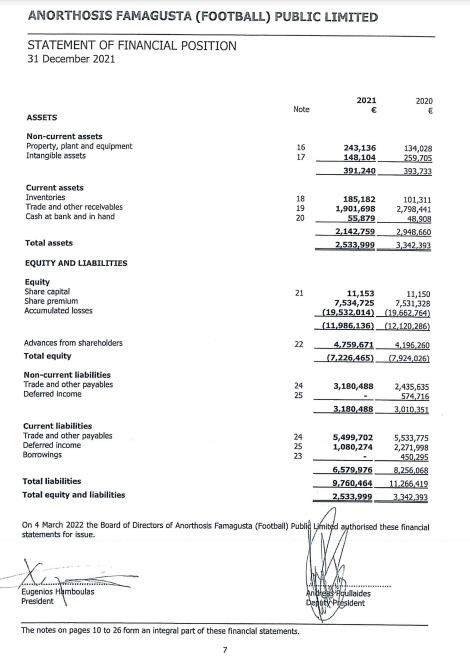 Η Ανόρθωση έκλεισε το 2021 με χρέη που έφθασαν στα €9,760,464. Τα εισοδήματα της ομάδας της Αμμοχώστου, ήταν ωστόσο, €8,990,016.