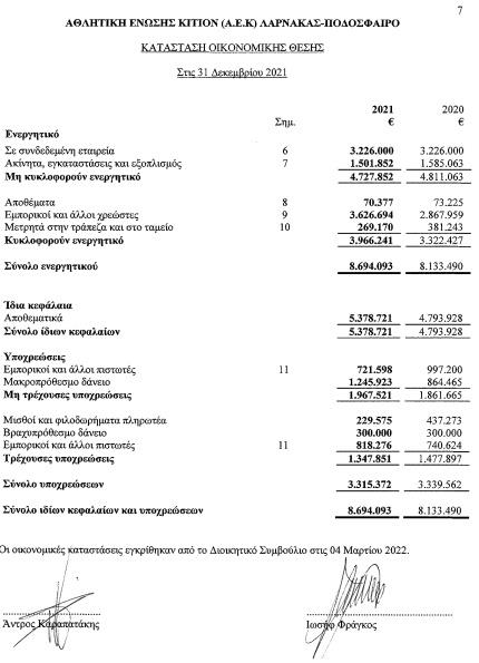 Τα χρέη της ΑΕΛ ανέρχονται σε πάνω από δέκα εκατομμύρια ευρώ, αφού το 2021, όπως αποδεικνύεται δεν ήταν και η καλύτερη χρονιά για την ομάδα της Λεμεσού. Συνολικά η ΑΕΛ οφείλει ως σωματείο κι ως εταιρεία συνολικά, €10,842,946.