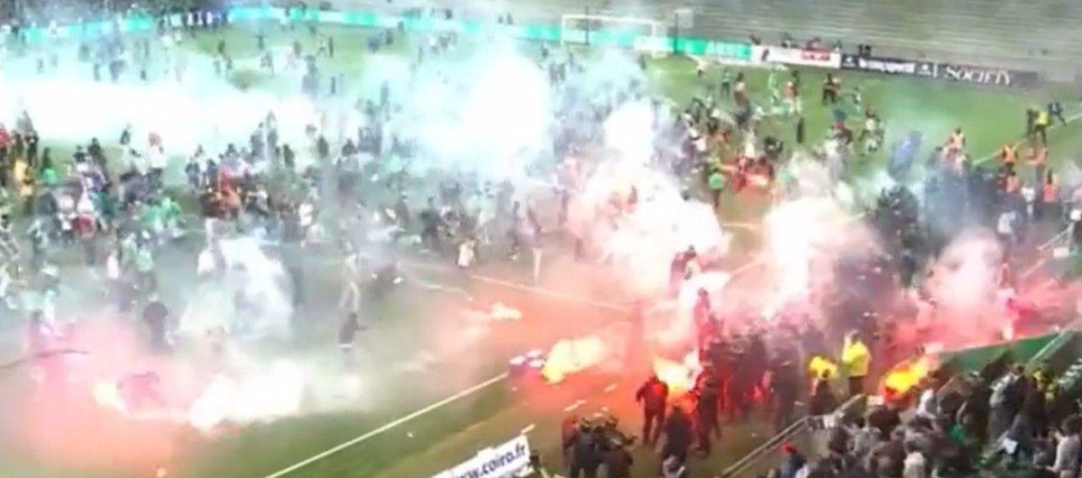 Σοκαριστικές στιγμές βίωσαν οι παίκτες της Σεντ Ετιέν και της Οσέρ μετά τη λήξη του μεταξύ τους αγώνα και τον υποβιβασμό των στεφανουά, καθώς οι οπαδοί των γηπεδούχων εισέβαλαν έξαλλοι στον αγωνιστικό χώρο με καπνογόνα, προκαλώντας χάος. Από τα καπνογόνα και τις φωτοβολίδες που έριξαν κάηκαν κάποιες κερκίδες στην εξέδρα, όπως αναφέρει το RMC.