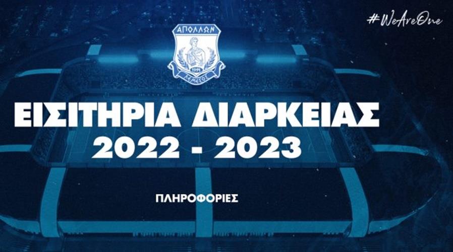 H Εταιρεία Απόλλων Ποδόσφαιρο (Δημόσια) Λτδ ανακοίνωσε ότι από το απόγευμα της προσεχούς Τρίτης (05/07, 15:00) αρχίζει η διάθεση εισιτηρίων διαρκείας για την αγωνιστική περίοδο 2022-2023.