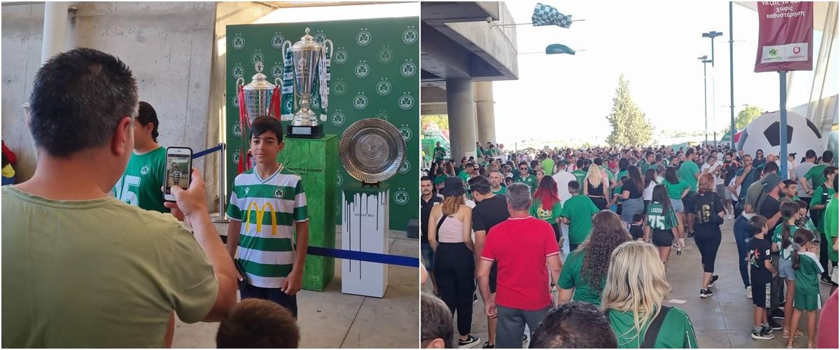 Από νωρίς το απόγευμα, αρκετοί οπαδοί των πρασίνων βρέθηκαν έξω από το ΓΣΠ για να γιορτάσουν, με το πρωτάθλημα του 2021, την ασπίδα του 2022 και το κύπελλο του 2022 να έχουν περίοπτη θέση και αρκετούς μικρούς και μεγάλους να μαζεύονται για να φωτογραφηθούν μαζί τους.