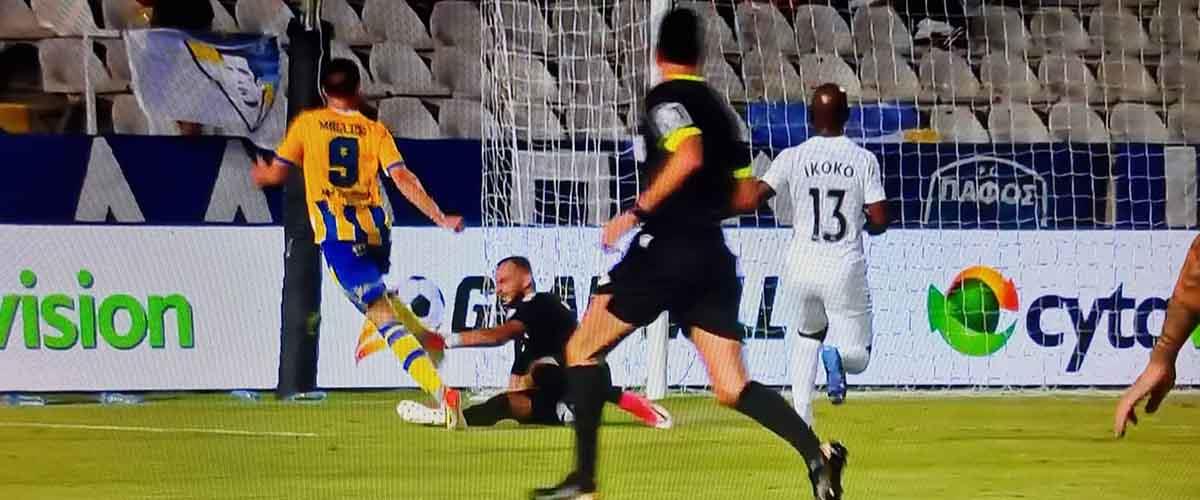 Συγκεκριμένα στο 28', ο Μαρκίνιος αφού έδωσε κάθετα στον Μάγκλιτσα, ο δεύτερος πλάσαρε από κοντά αλλά ο Άντος της παφιακής ομάδας πρόλαβε την μπάλα με τα πόδια.