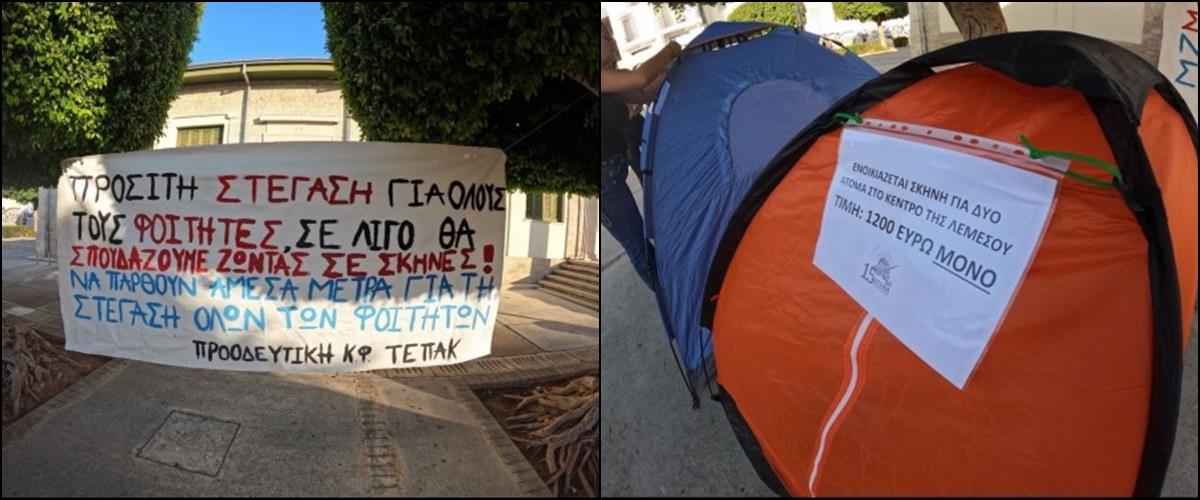 Άλλωστε, σε ανάρτηση της η Προοδευτική Κίνηση Φοιτητών αναφέρει ότι «προχωρήσαμε σε συμβολική παράσταση διαμαρτυρίας στήνοντας αντίσκηνα στο προαύλιο του ΤΕΠΑΚ, για τα υψηλά κόστη των ενοικίων Παγκύπρια!