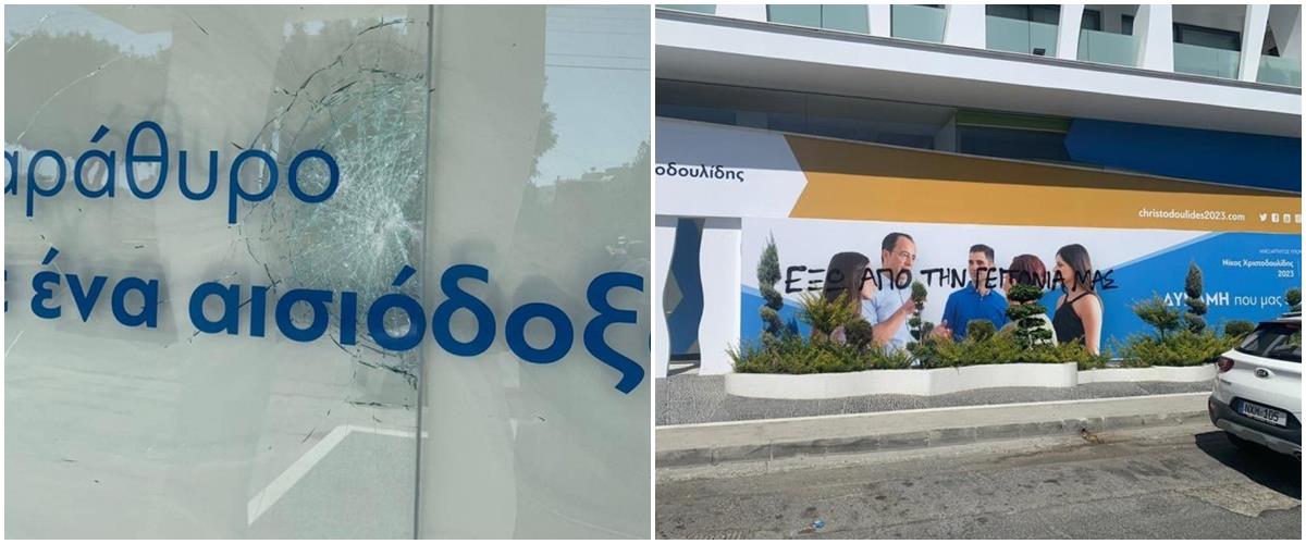 Υπενθυμίζεται ότι άγνωστοι, γύρω στις 11:40 το πρωί, επιτέθηκαν με πέτρες στο οίκημα του επιτελείου του Νίκου Χριστοδουλίδη, στη Λεμεσό, προκαλώντας ζημιές στις γυάλινες πόρτες και τζαμαρίες. Μάλιστα, κάποιοι έγραψαν με σπρέι το σύνθημα, πάνω στην αφίσα του κ. Χριστοδουλίδη, «έξω από τη γειτονιά μας», στέλνοντας το μήνυμα ότι δεν είναι επιθυμητός στη γειτονιά εκείνη.