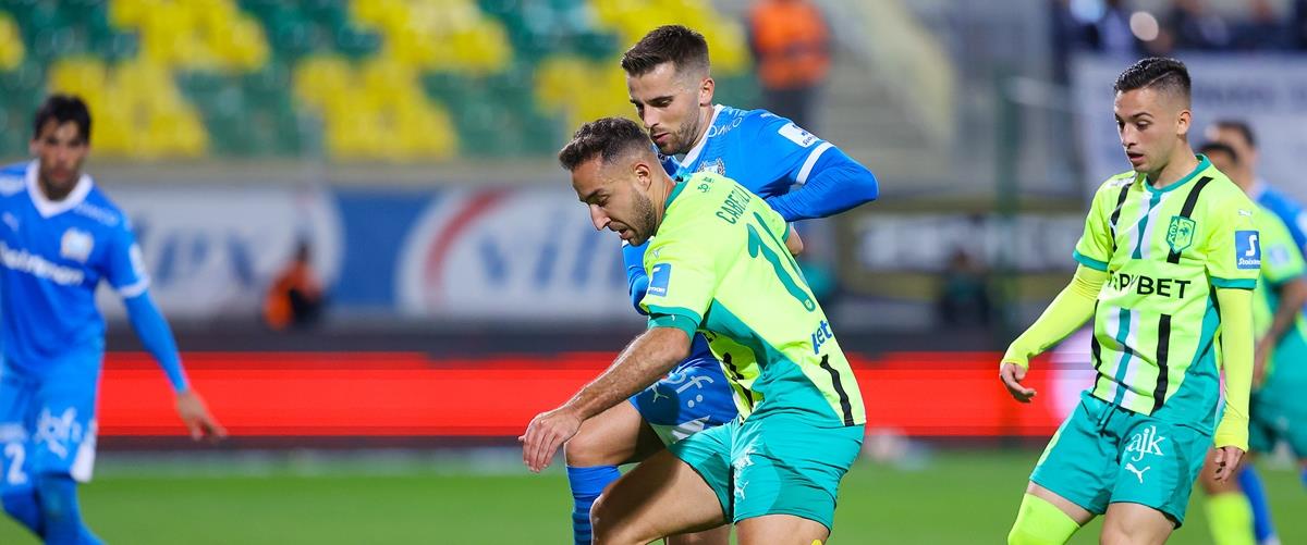 Οι κιτρινοπράσινοι της Λάρνακας, αν και δεν είχαν αρκετές φάσεις μπροστά στην εστία του Απόλλωνα κατά τη διάρκεια του α’ ημιχρόνου, στο 42’ ο Τσακόν άνοιξε το σκορ, ενώ λίγο αργότερα και ο Αϊτόρ σκόραρε από την άσπρη βούλα.