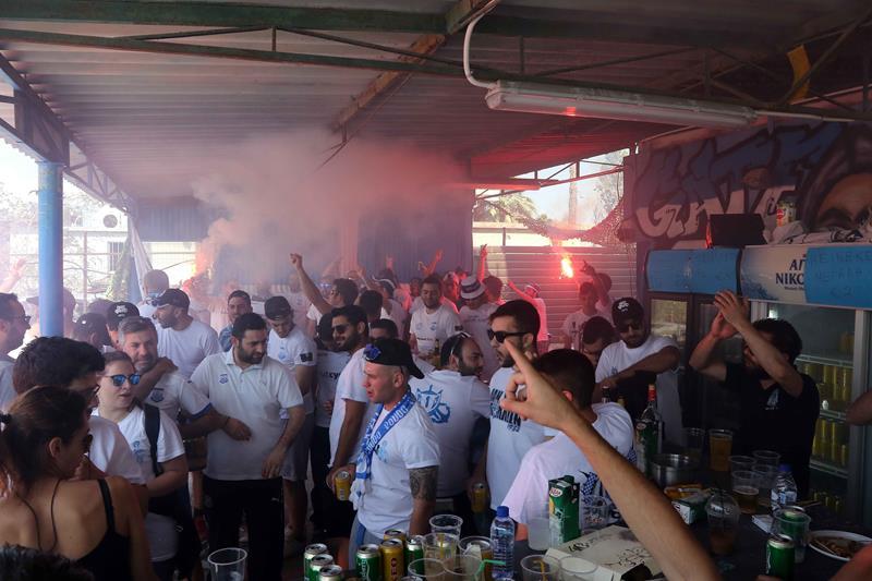 Οι οπαδοί της ομάδας της Λεμεσού έφαγαν, ήπιαν μπύρες και ετοιμάζονται με συνθήματα για τη δική τους μάχη στην κερκίδα. Στο χώρο υπήρχαν και αντίσκηνα, προφανώς για λίγες στιγμές ξεκούρασης!