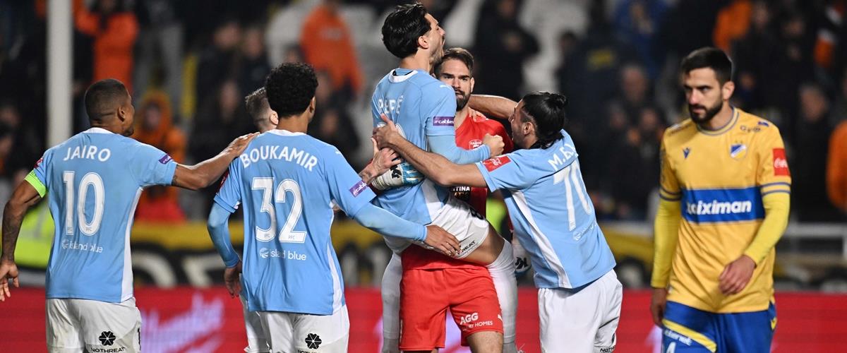 Όσον αφορά στον ΑΠΟΕΛ, η ομάδα της Λευκωσίας μένει για πέμπτη συνεχόμενη χρονιά εκτός των ημιτελικών του κυπέλλου, με το χαμένο πέναλτι του Αμπάγκνα και την απόκρουση του πέναλτι του Λαΐφη να αποδεικνύονται μοιραία.
