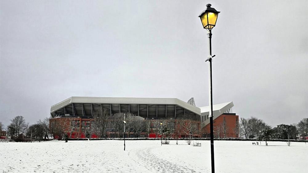 Η χιονόπτωση που έπληξε το Μέρσεϊσαϊντ το Σάββατο είχε καλύψει το «Άνφιλντ» με ένα λευκό πέπλο, προκαλώντας ανησυχία για την κατάσταση του αγωνιστικού χώρου και τη μετακίνηση των φιλάθλων.