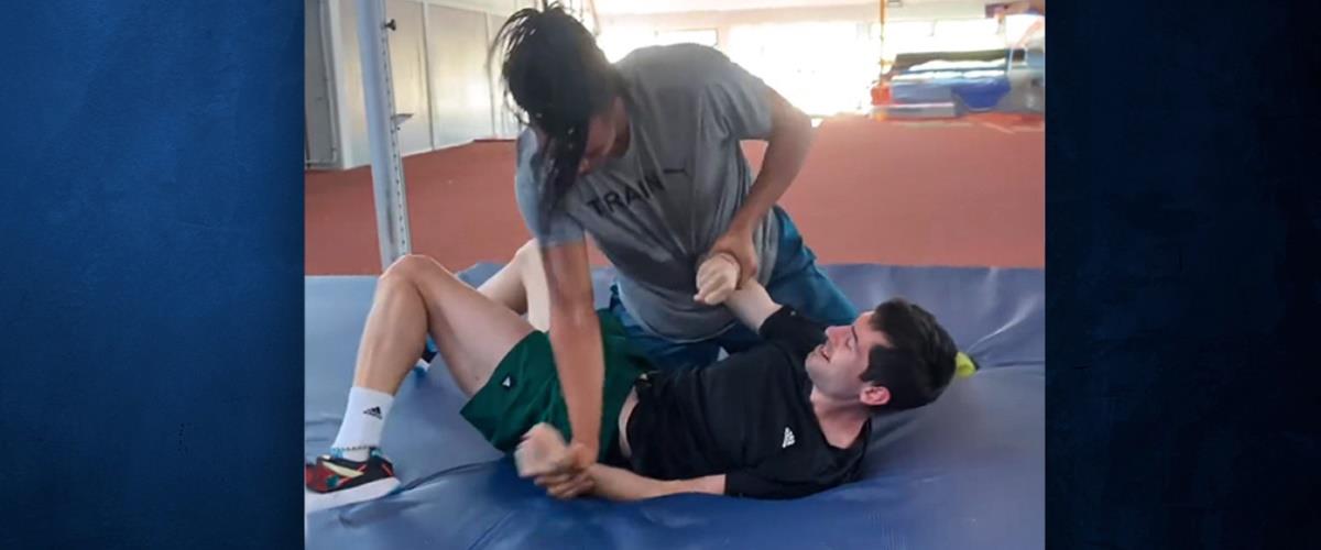 Σε βίντεο που ανέβασε ο Μανόλο, φαίνεται πως οι δύο αθλητές και φίλοι το ρίξανε στην... ελληνορωμαϊκή πάλη, παίζοντας ένα φιλικό «ξύλο» πάνω σε στρώμα. Οι δύο αθλητές γελούσαν, ωστόσο, από κοντά ήταν και ο προπονητής τους Γιώργος Πομάσκι ο οποίος του είπε πολλές φορές να σταματήσουν για να μην τραυματιστούν, σαν στοργικός πατέρας.
