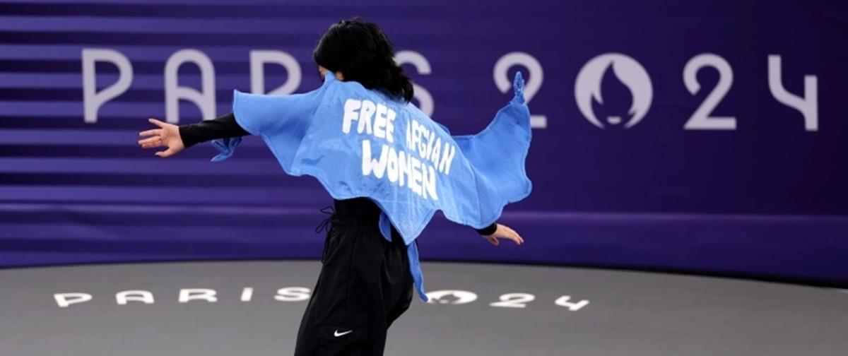 Η Αφγανή αθλήτρια του breaking Μανίζα Ταλάς, αποκλείστηκε από τους Ολυμπιακούς Αγώνες του Παρισιού, επειδή εμφανίστηκε με σημαία στην πλάτη που έγραφε «Ελευθερώστε τις Αφγανές» στον αγώνα της.