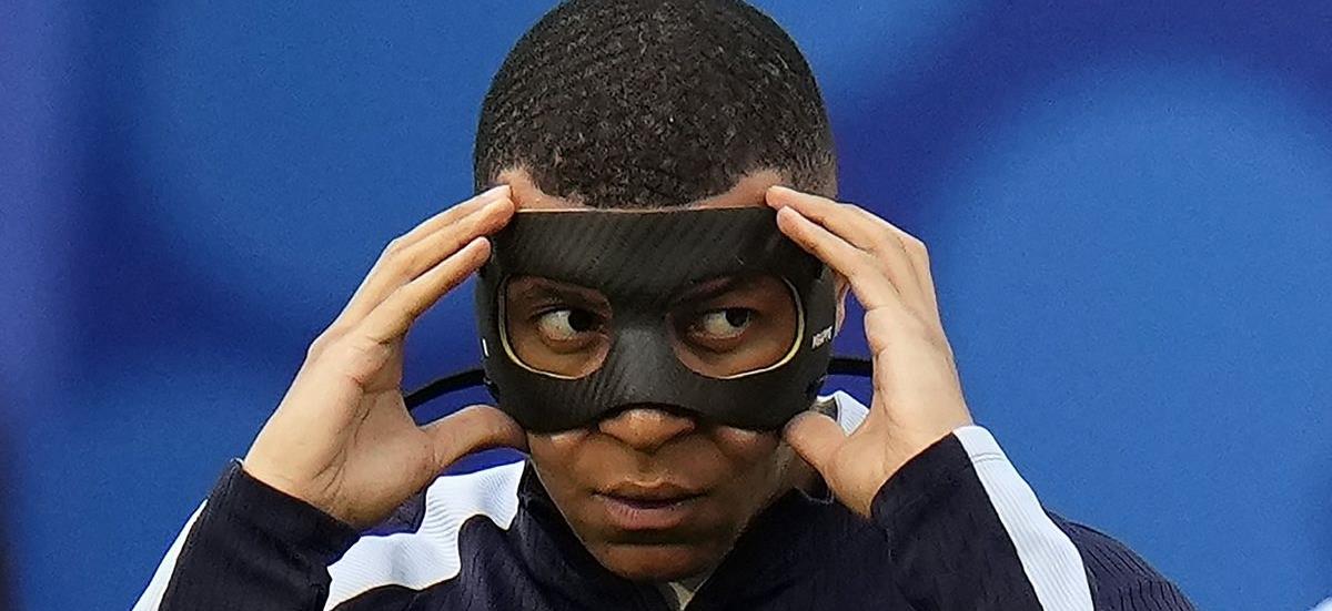 Ο Κιλιάν Εμπαπέ μετά τον τραυματισμό στη μύτη του στην 1η αγωνιστική των ομίλων στο Euro 2024 αναγκάστηκε να αγωνίζεται με ειδική προστατευτική μάσκα.