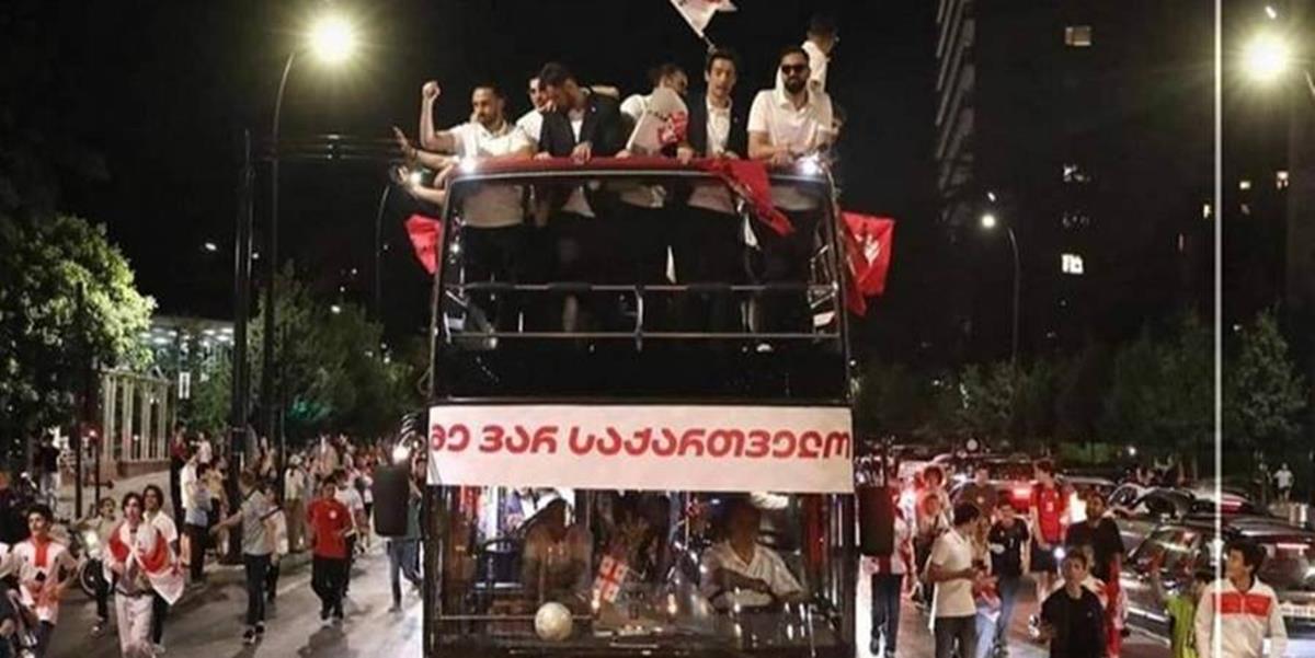 Χιλιάδες Γεωργιανοί βρέθηκαν στους δρόμους της Τιφλίδας για να υποδεχθούν την εθνική ομάδα της χώρας.