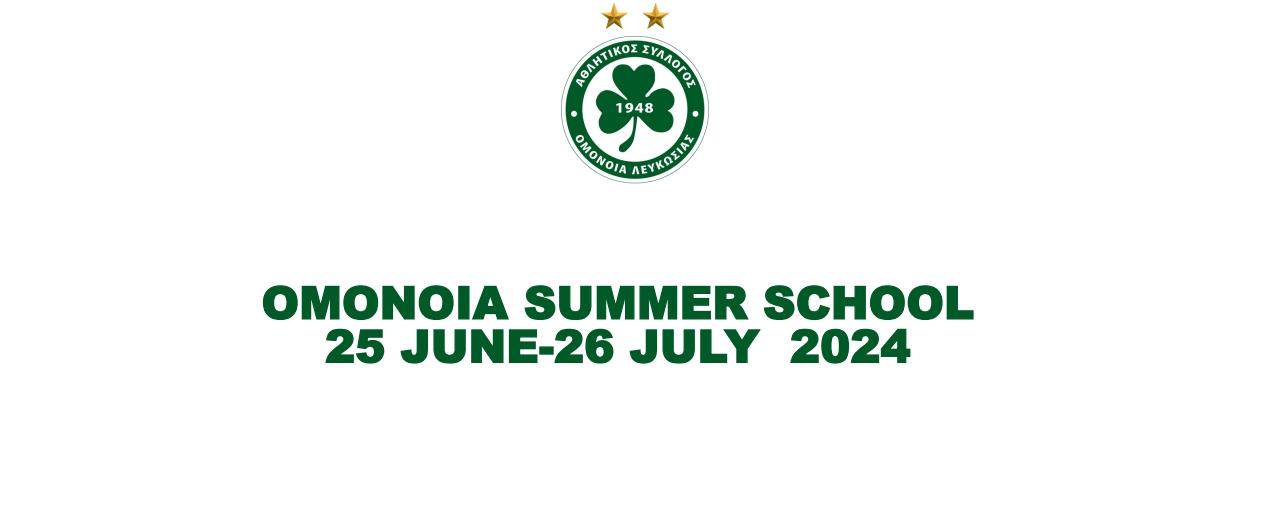 Η Ακαδημία OMONOIA FC ανακοινώνει τη διοργάνωση «Summer School» και «Summer Football School», που θα πραγματοποιηθεί από τις 25 Ιουνίου μέχρι τις 26 Ιουλίου (καθημερινές), μεταξύ των ωρών 07:30 – 14:30 στην Λευκωσία.