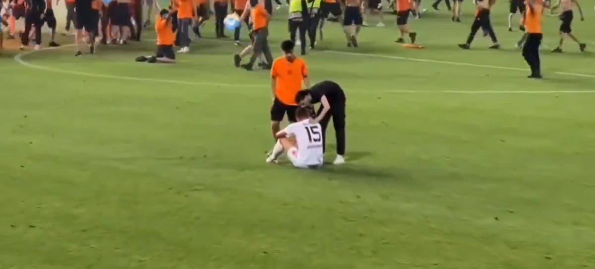 Τότε οι δύο οπαδοί του ΑΠΟΕΛ τον πλησίασαν, του έδωσαν το χέρι και τον σήκωσαν. Μια στιγμή που θα μπορούσε να είναι και η στιγμή της χρονιάς