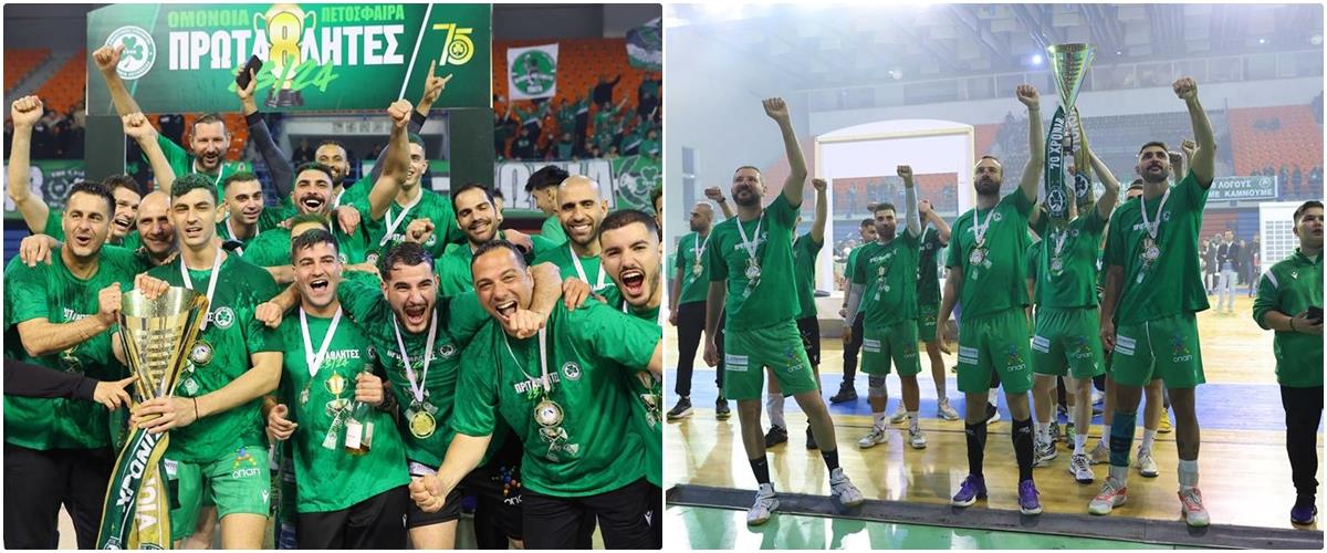 Η ομάδα βόλεϊ ανδρών των πρασίνων, πανηγύρισε τον 8ο τίτλο της, σε τελετή απονομής που πραγματοποιήθηκε μετά το ματς κόντρα στην ΑΕ Καραβά, στο Τάσος Παπαδόπουλος Ελευθερία.