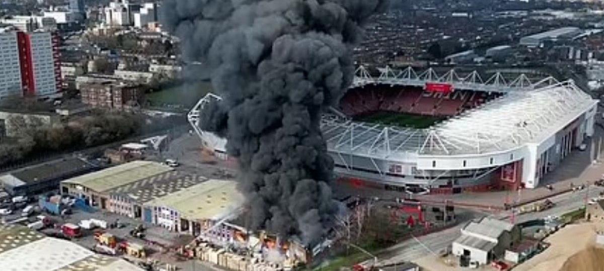 Και αυτό γιατί ξέσπασε το απόγευμα μεγάλη φωτιά σε παλιά αποθήκη, που βρίσκεται δίπλα στο γήπεδο της Σαουθάμπτον, το "Σεντ Μέρις", με τους καπνούς να διακρίνονται από χιλιόμετρα και την πυροσβεστική να σπεύδει άμεσα στην περιοχή για να περιορίσει την έκταση της ζημιάς.