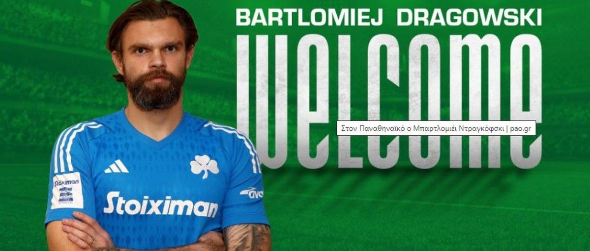 "Η ΠΑΕ Παναθηναϊκός ανακοινώνει την απόκτηση του Μπαρτλομιέι Ντραγκόφσκι με τη μορφή δανεισμού από την ιταλική Σπέτσια. Η συμφωνία προβλέπει το δανεισμό του έως το καλοκαίρι του 2024.