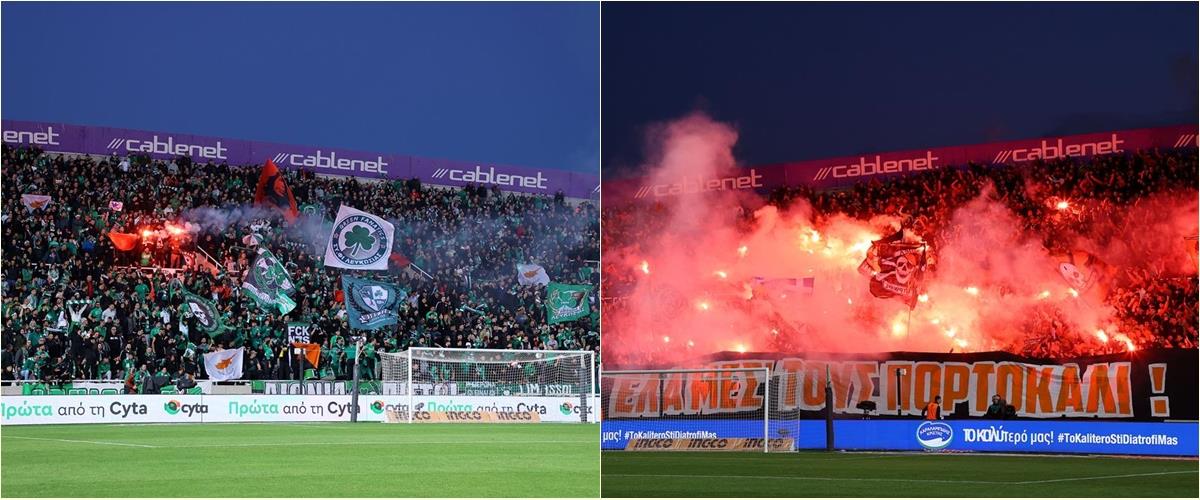 Με συνθήματα και φωτοβολίδες, οι οπαδοί ντόπαραν τους ποδοσφαιριστές τους για να τους σπρώξουν προς τη νίκη.