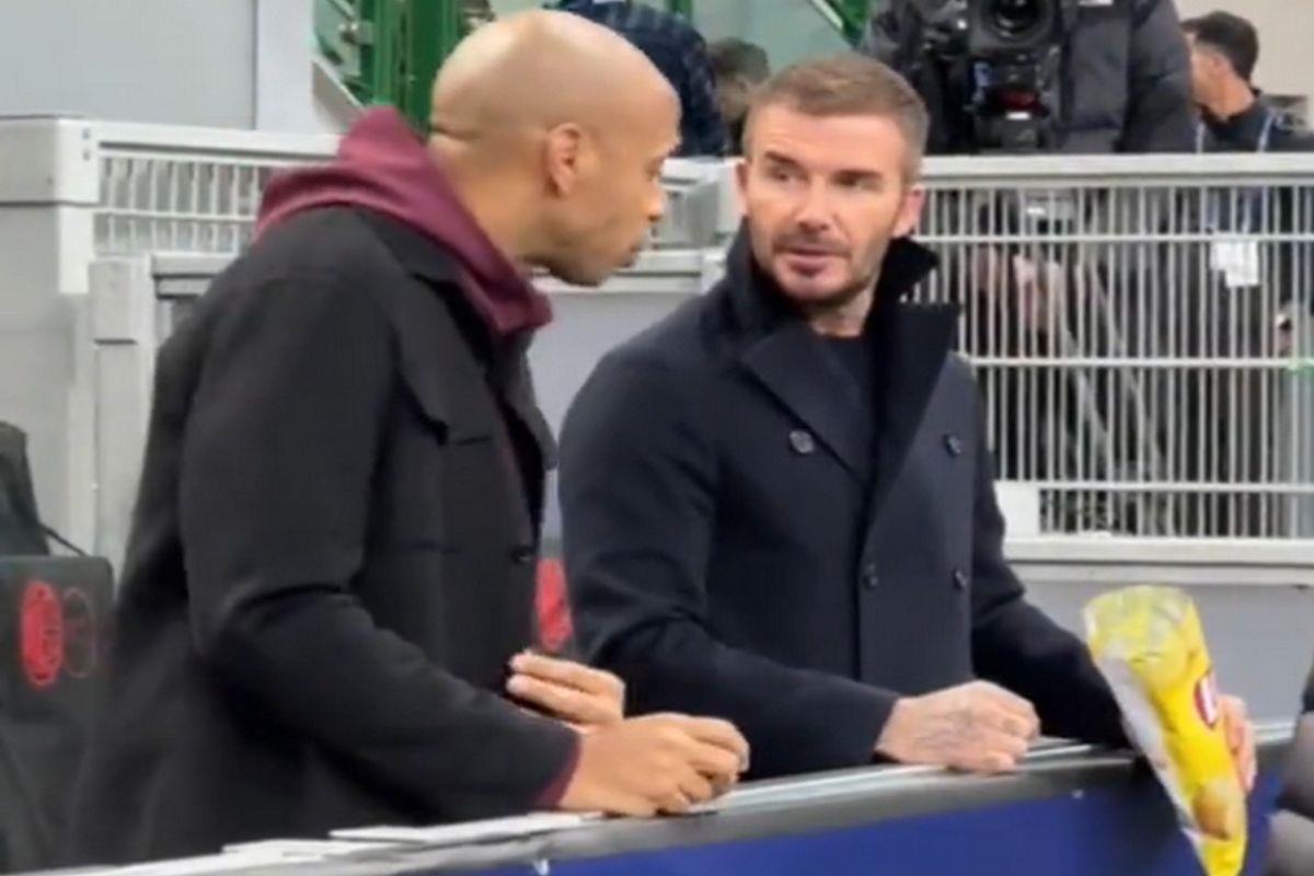 Ο Ντέιβιντ Μπέκαμ και ο Τιερί Ανρί έδωσαν το παρών στο Σαν Σίρο και παρακολούθησαν από κοντά τη νίκη με 2-1 της Μίλαν επί της Παρί για τον 6ο όμιλο του Champions League.