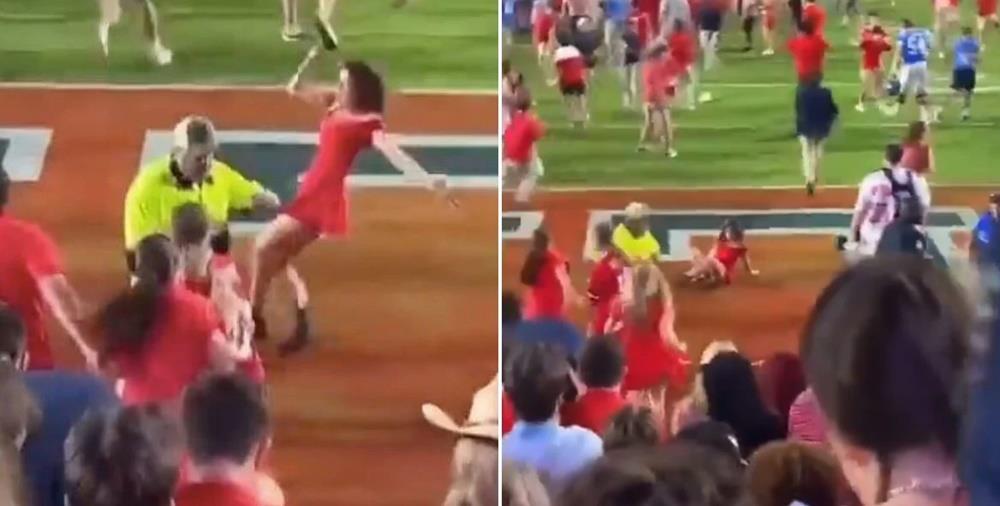 Όπως φαίνεται στο βίντεο, με τη λήξη του αγώνα και τη νίκη του Ole Miss με 55-49, οι οπαδοί της ομάδας θέλησαν να μπουν στο γήπεδο για να γιορτάσουν.